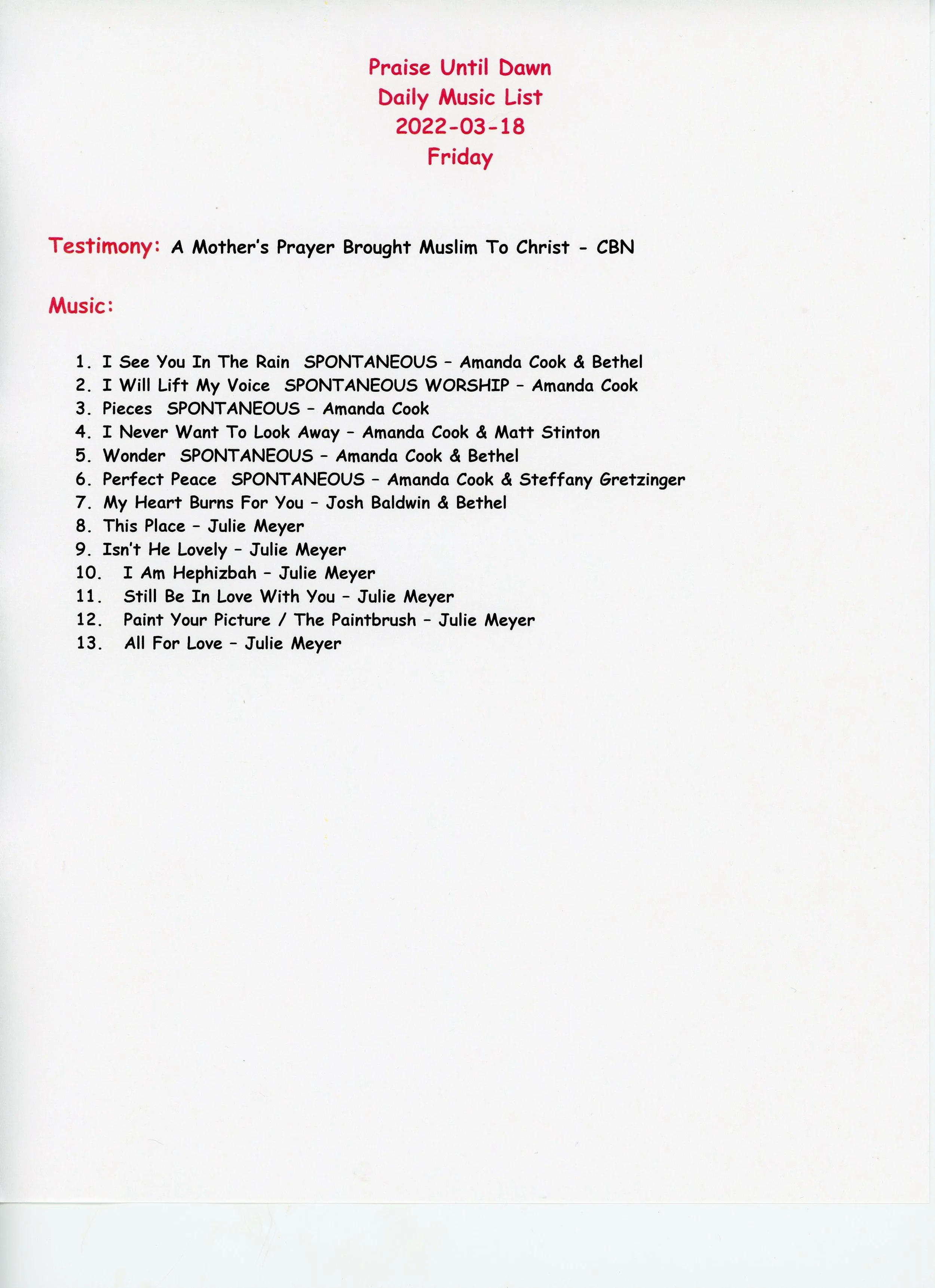 "Praise Until Dawn" Podcast Friday 2022-03-18
