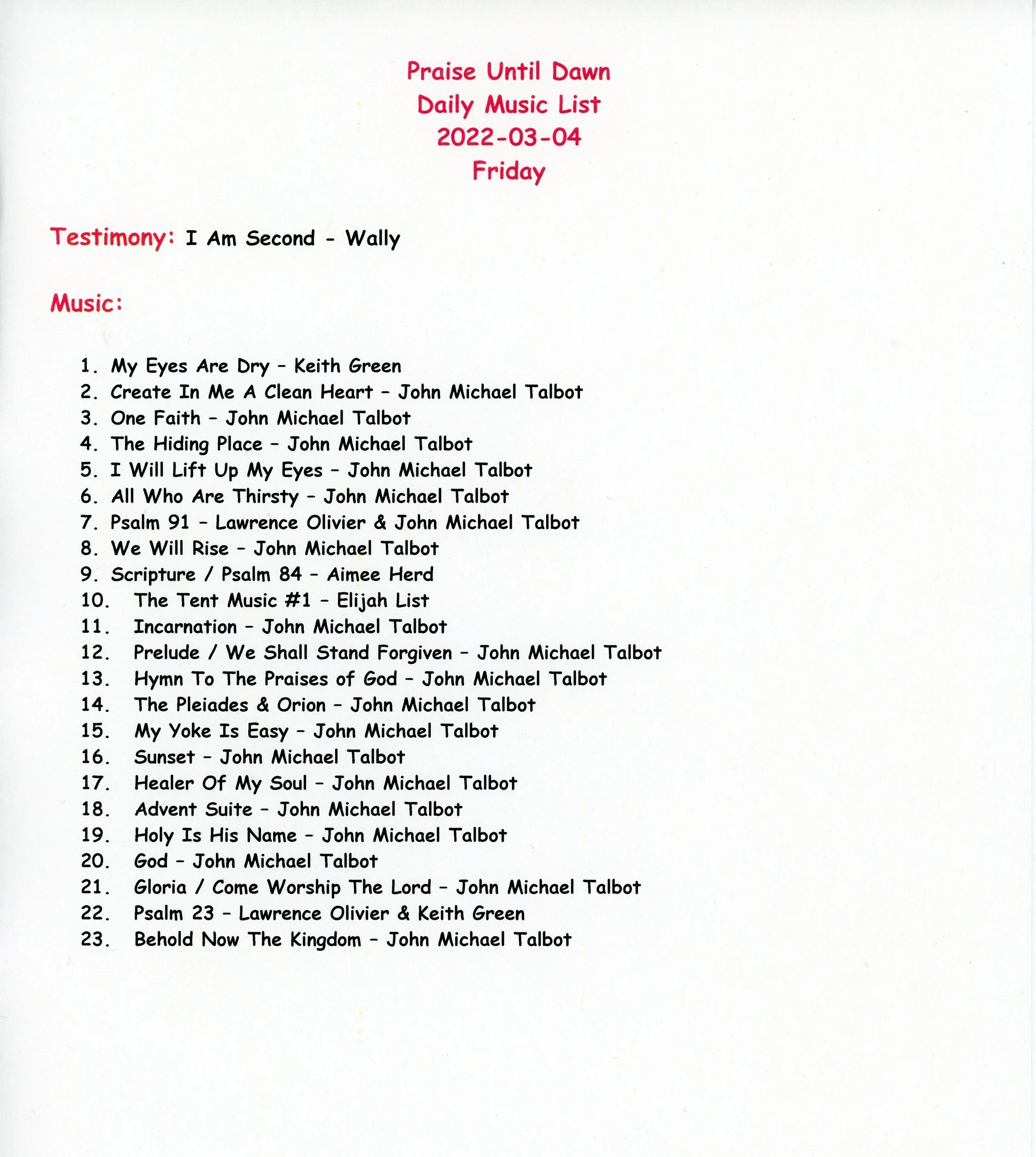 "Praise Until Dawn" Podcast Friday 2022-03-04