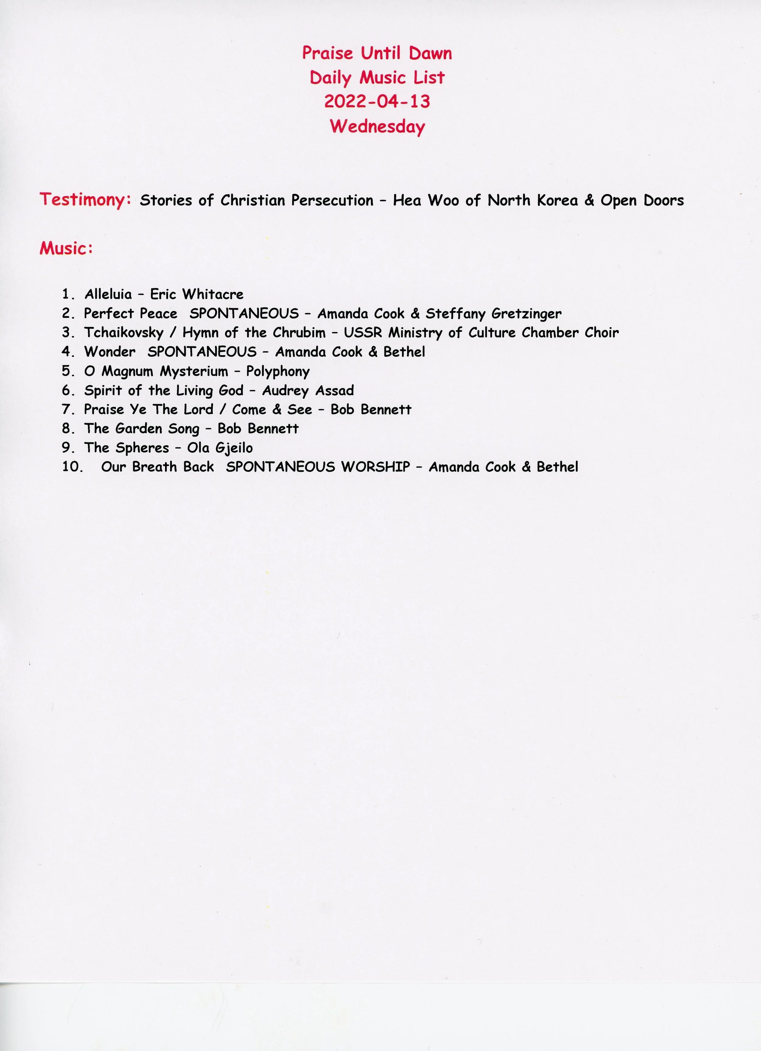 "Praise Until Dawn" Podcast Wednesday 2022-04-13 Pat RutherfordApril 13, 2022 Facebook0 Twitter 0 Likes