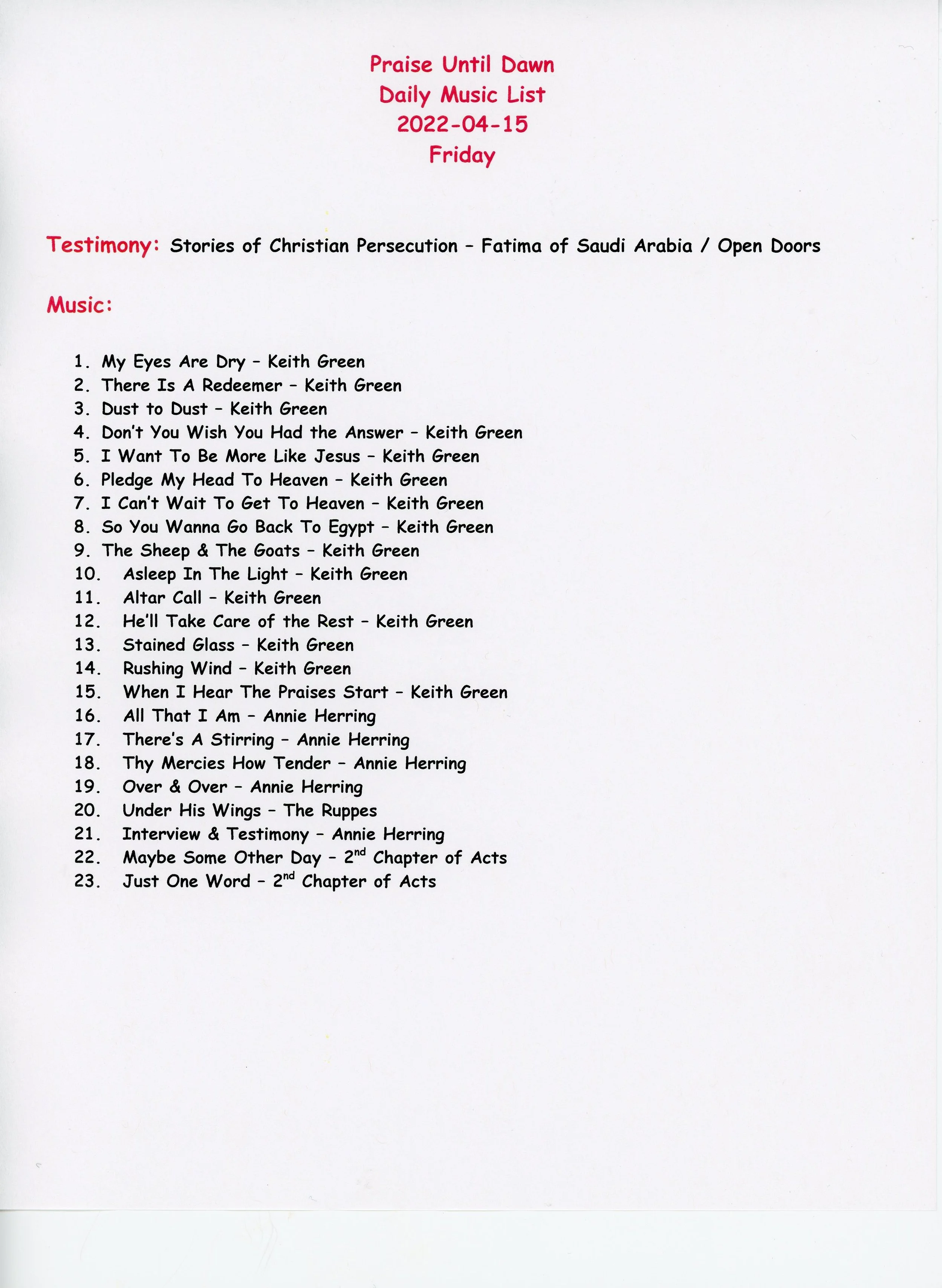 "Praise Until Dawn" Podcast Friday 2022-04-15