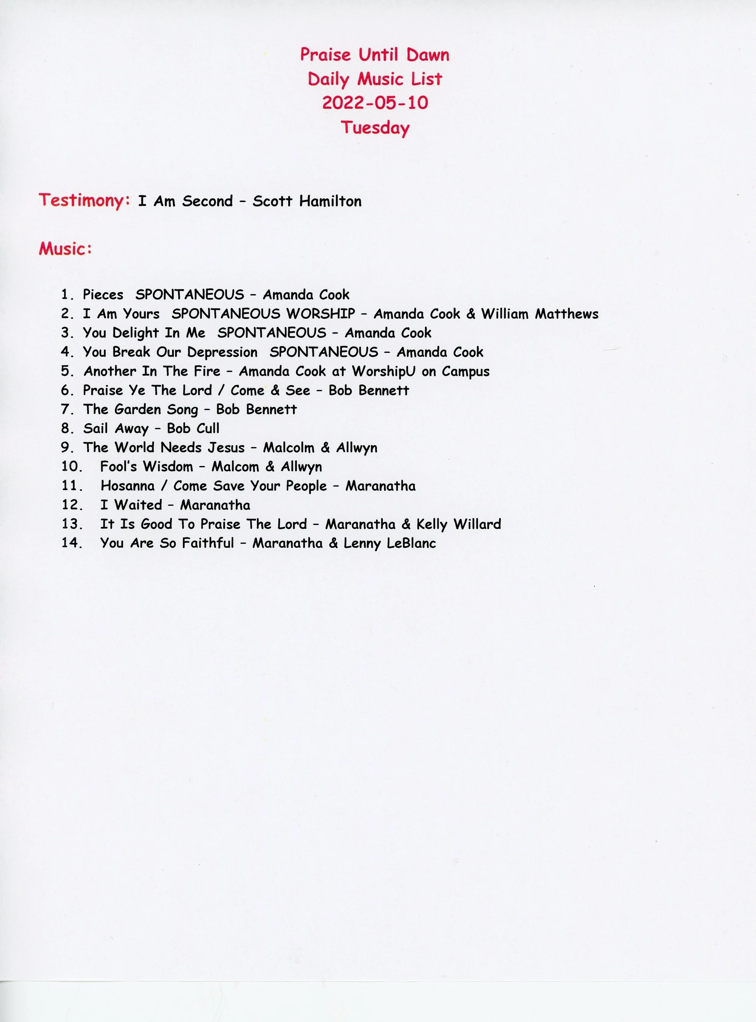 "Praise Until Dawn" Podcast Wednesday 2022-05-11