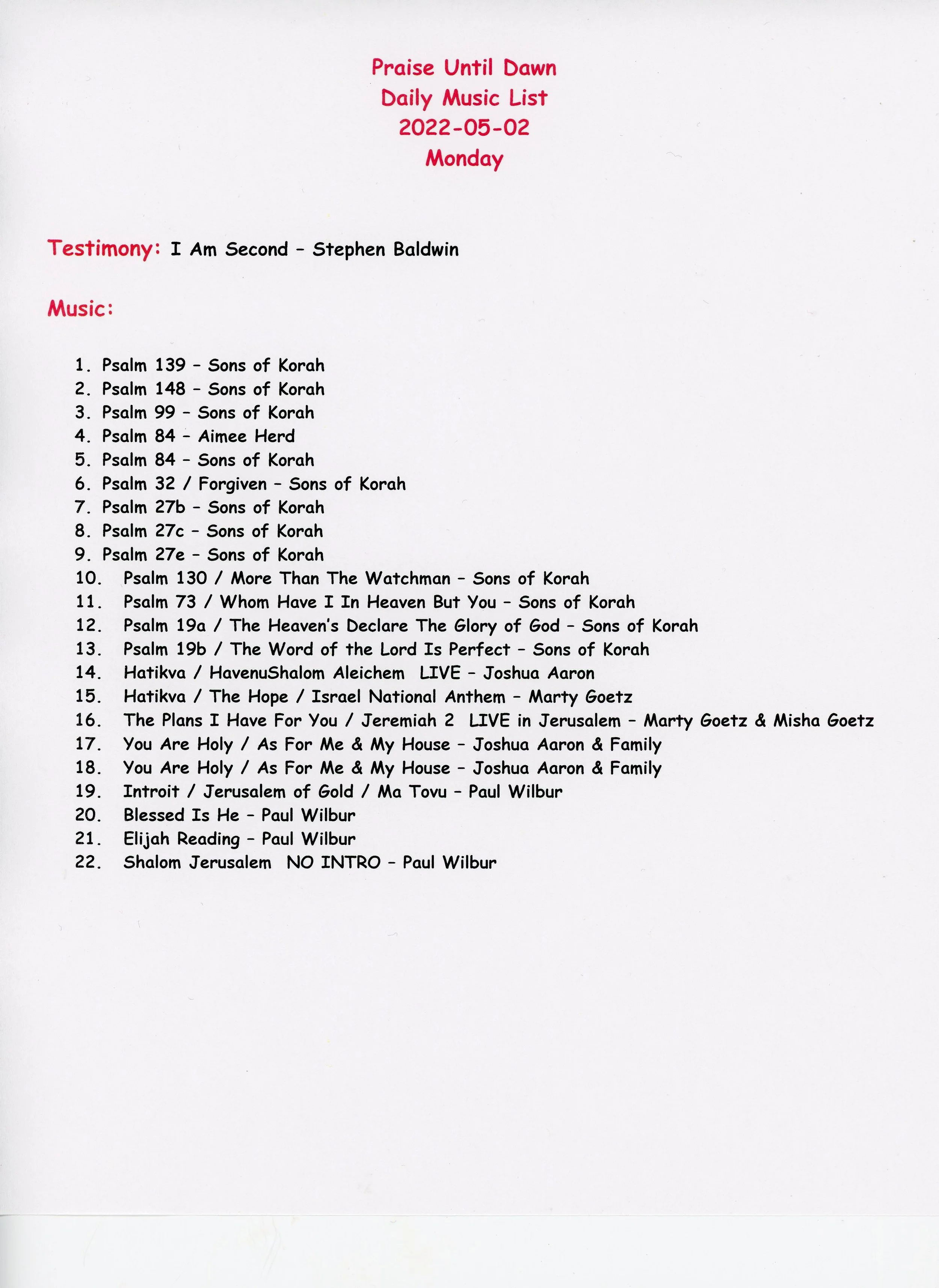 "Praise Until Dawn" Podcast Monday 2022-05-02