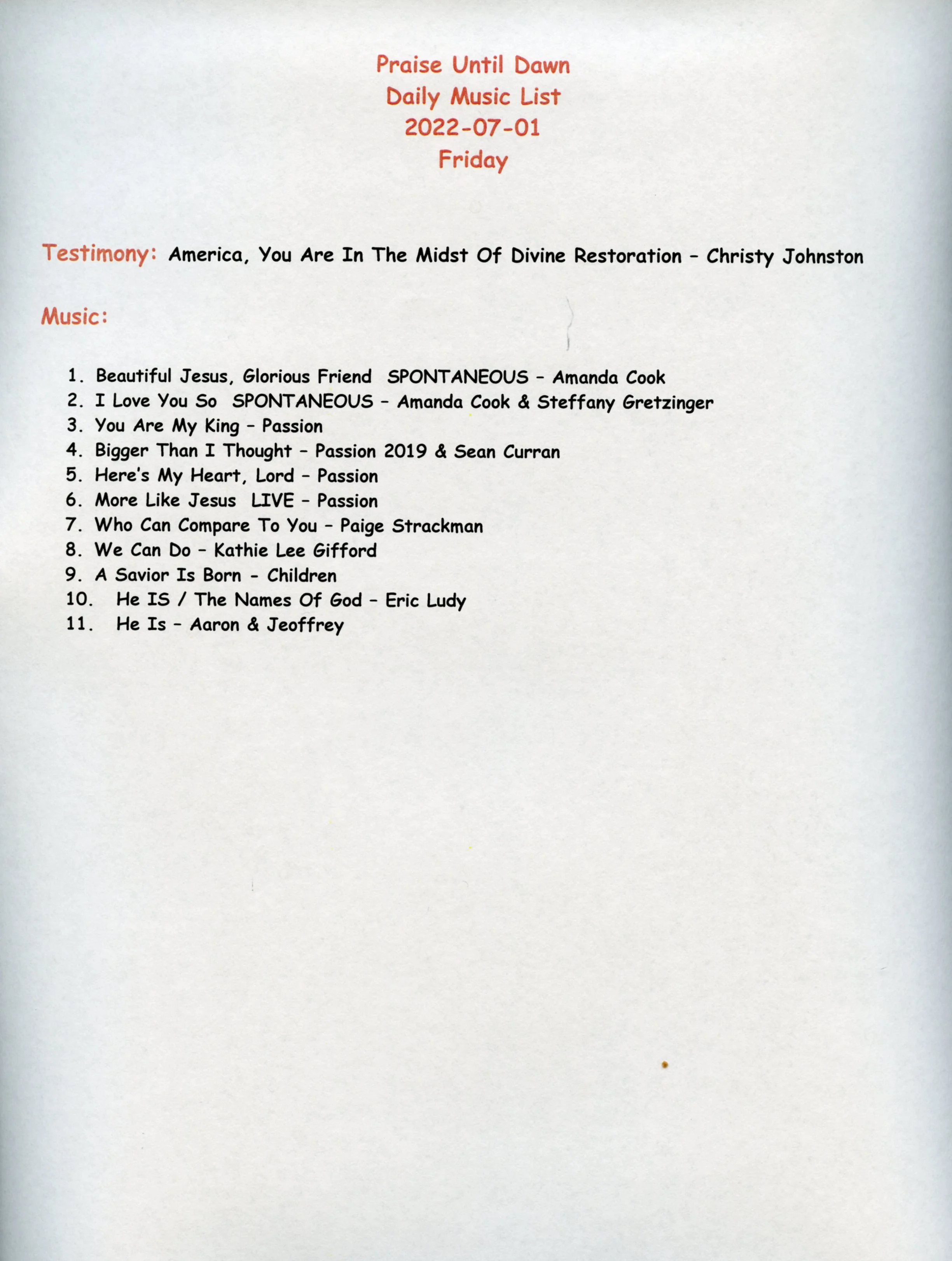 "Praise Until Dawn" Podcast Friday 2022-07-01