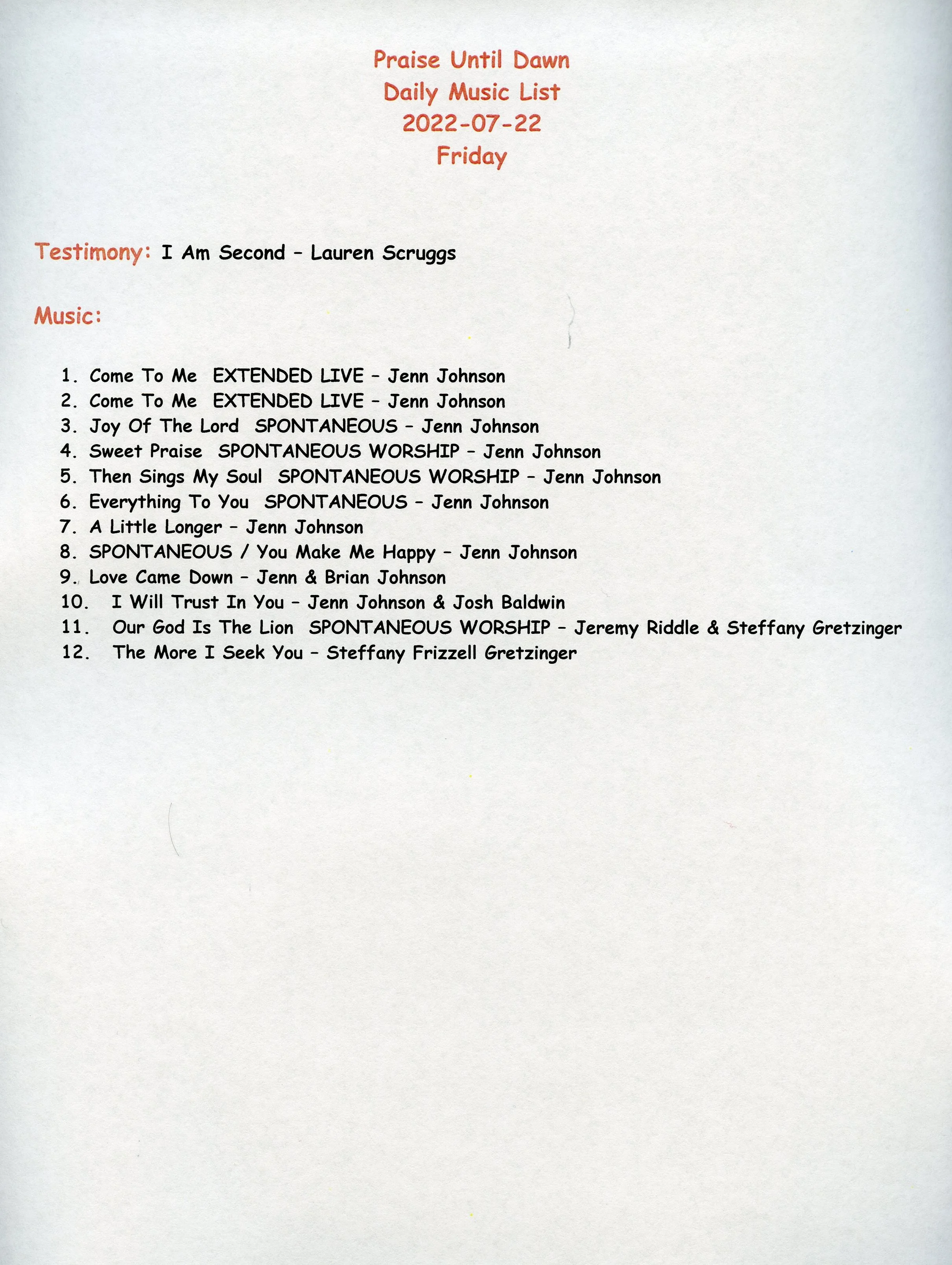 "Praise Until Dawn" Podcast Friday 2022-07-22